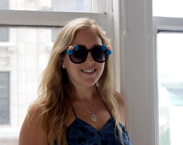 Continue this process until all of your flower cabochons are arranged. Now, your DIY floral sunglasses are ready to be shown off!