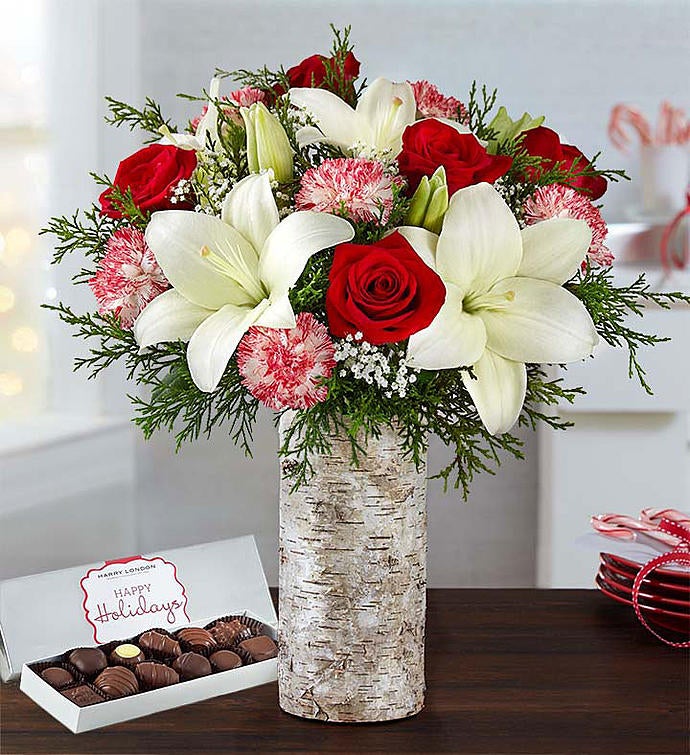 Our rich bouquet of dark red lilies and orange tulips will add some color to their fall! Gathered with fresh greenery, it’s a thoughtful gift that will leave them smiling from ear to ear. And to really highlight the beauty of the blooms, add one of our lovely vases, full of style and charm.