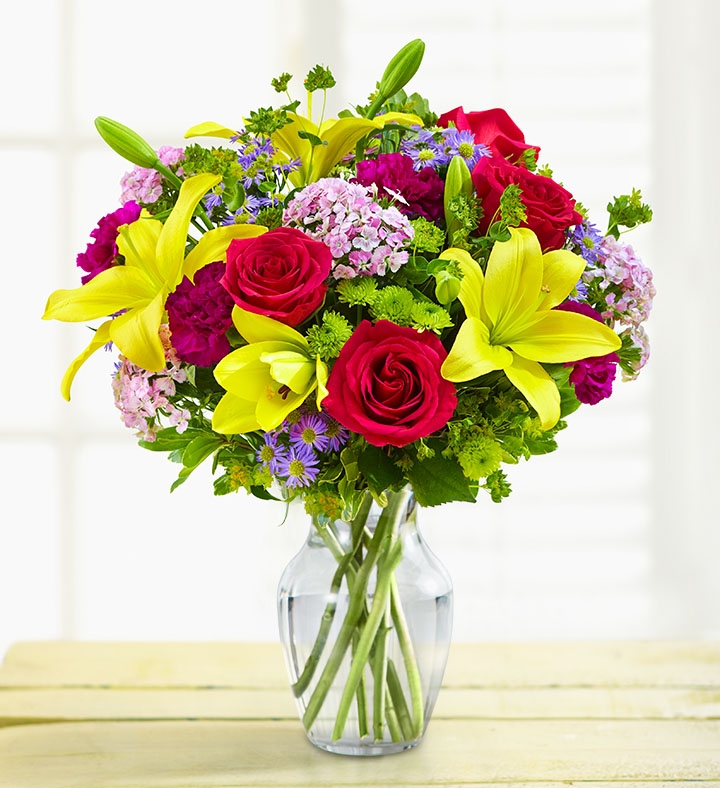 LIMITED-TIME OFFER: Send Twice the Flowers for Free Be the reason they smile! Send our colorful mixed bouquet of roses, lilies, carnations and more, artistically hand-designed inside a classic clear glass vase. Order today and, for a limited time, get a double bouquet for the price of a single bouquet!