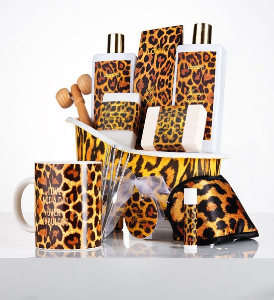Gift Basket for Women, 18pc Honey Almond Home Bath Pampering Package for Relaxing Stress Relief, Leopard Print Thank You, Birthday Gifts, Spa Self Care Kit, Aromatherapy Gifts