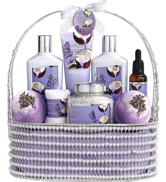 DELUXE 9 PIECE SET - This Spa Gift Basket arrives delightfully packaged in a beautiful Pearl Accent Basket that you can reuse to store toiletries and bathroom essentials.