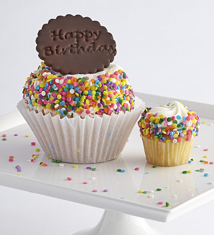 • Indulge them on their special day with these scrumptiously delicious mini gourmet birthday cupcakes from Little Whisk. The lucky recipient will love these tasty premium flavors: Chocolate, Vanilla, Strawberry and Red Velvet.  All are adorned with festive birthday candies. It's the perfect way to express your birthday wishes!  Kosher, OKS.