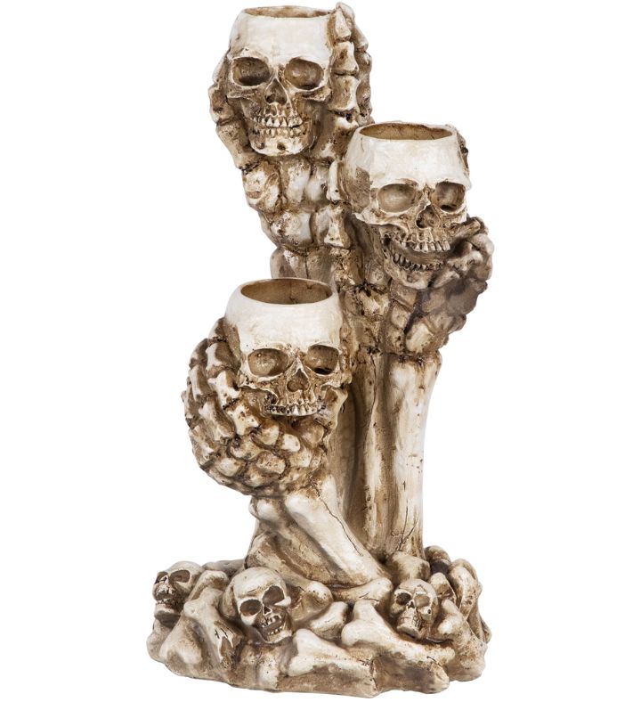 Triple Skulls And Bones Halloween Tea Light Candle Holder   12"