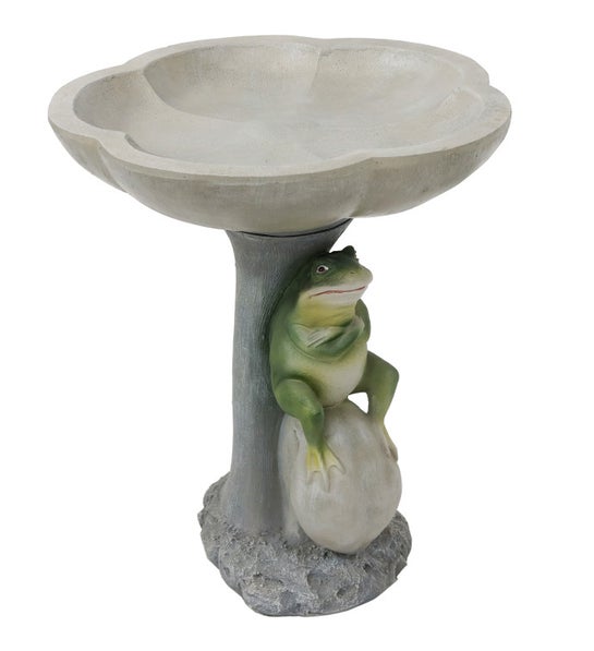 22" Bird Bath Polyresin Outdoor Garden Lightweight Brooding Frog On Stone