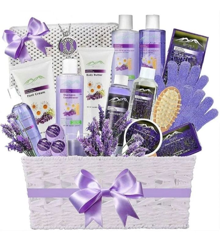 About Deluxe Lavender & Chamomile 22 Piece Bath Gift Basket Necklace Spa Pillow