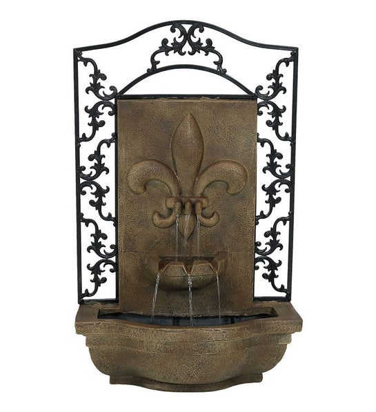 About French Lily Solar With Battery Wall Fountain 33" Florentine Stone