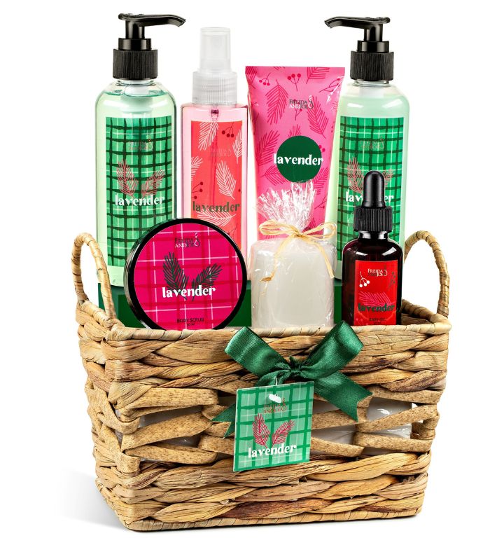 2. Holiday Lavender 9-Pc Bath & Body Spa Gift Set for Women in A Wicker Basket