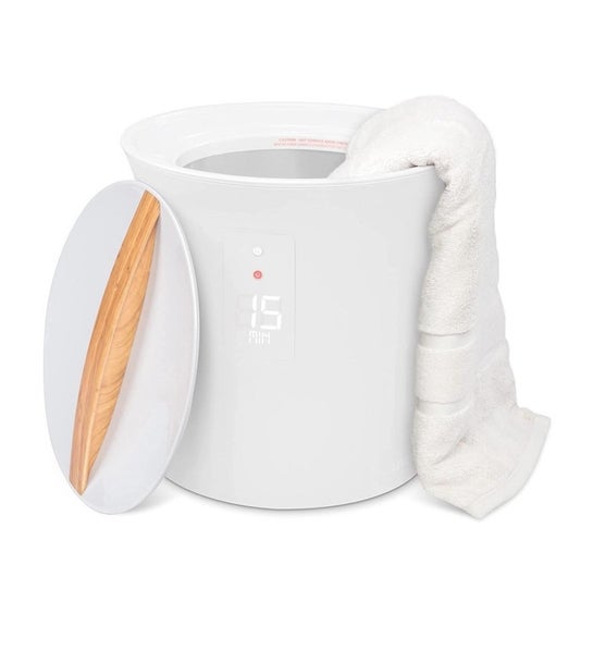 2. Livefine Towel Warmer, Small Bucket Style Heated Towel Warmer - White