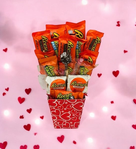 For peanut butter lovers, our Peanut Butter Valentine’s Day Candy Bouquet is the perfect treat! A deliciously sweet mix, beautifully arranged to make this Valentine’s Day extra special.