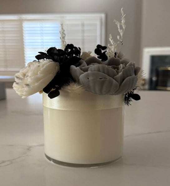 Our Flower Box Candles come with five of the cutest candles. Notes: Top – Floral Middle – French Lavender, Egyptian Amber Bottom – Black Myrrh, Tonka Bean, Egyptian Musk, Sage Premium Soy Wax Blend Double Wick 10-11 hour burn time each