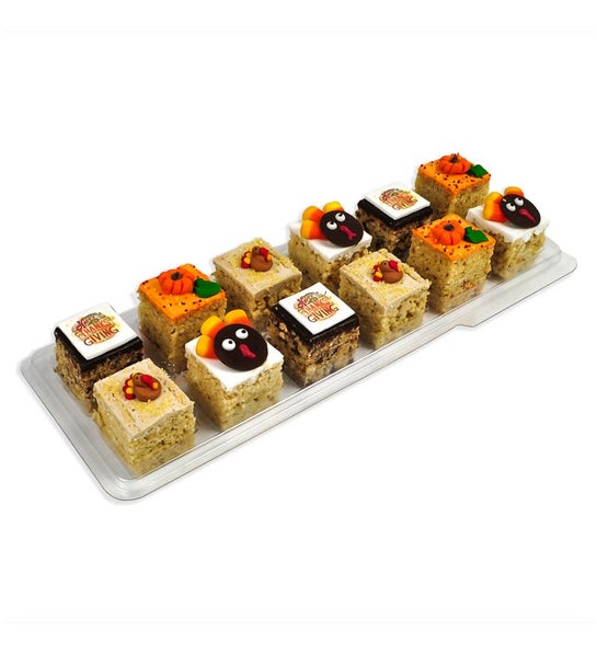 Turkeys, Pilgrims, and More---all on top of assorted rice krispie treats. Flavors include Pumpkin Spice, Caramel Sea Salt, and Butter Pecan.