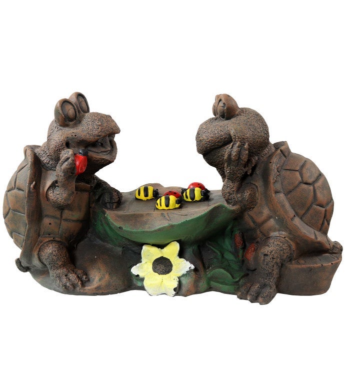 Sunnydaze Tic Tac Toe Turtles Concrete Garden Statue. Includes 1 statue. Fiberglass-reinforced concrete. Features 2 playful turtles playing tic tac toe. Dimensions: 12.25" W x 6" D x 7.5" H; Weighs 6.8 lbs