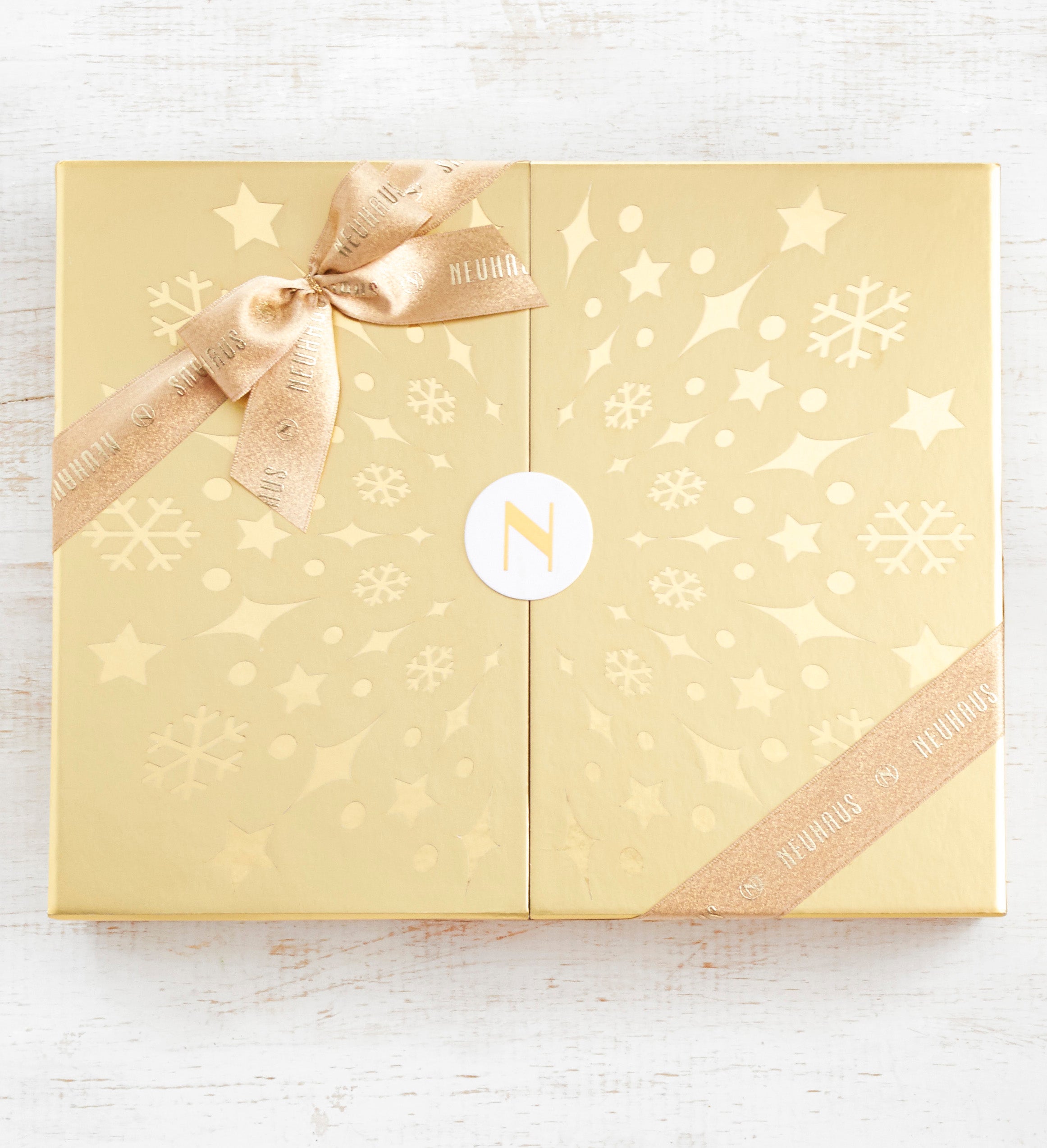The perfect marriage of craftsmanship, innovation and style. Neuhaus's luxurious Premium bronze gift box slides open to reveal two decadent layers of carefully-selected Belgian pralines. Sixty-two assorted filled chocolates in milk, dark and white chocolate. Tied with a shimmering gold ribbon. The height of luxury and sure to impress!