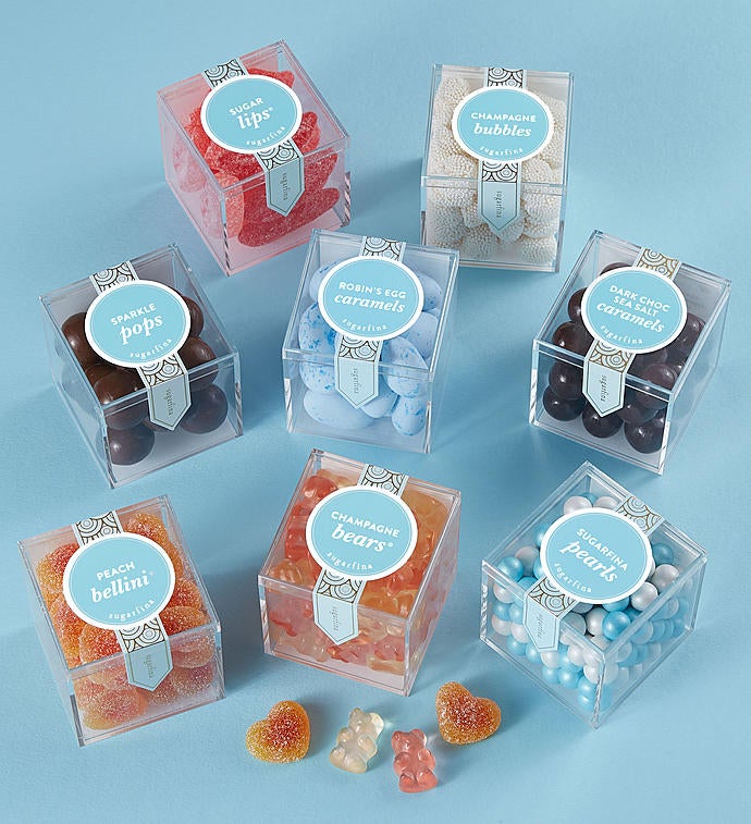 Sugarfina's Faves are the perfect way to celebrate any special day or just "because". This gold embossed artful gift box includes adorable lucite boxes of Sugarfina's most popular sweets.  The 3 piece box candy flavors are Champagne Bears®, Sea Salt Caramels, and Peach Bellini® and the 8 piece box includes Champagne Bear®s, Sea Salt Caramels, Sugar Lips®, Champagne Bubbles, Sugarfina Pearls, Sparkle Pops, Robin's Egg Caramels, and Peach Bellini®.  Sugarfina, founded by a couple who love candy and each other, was named one of the world's 50 most innovative companies in 2018 by Fast Company.  Send these Faves to your faves!