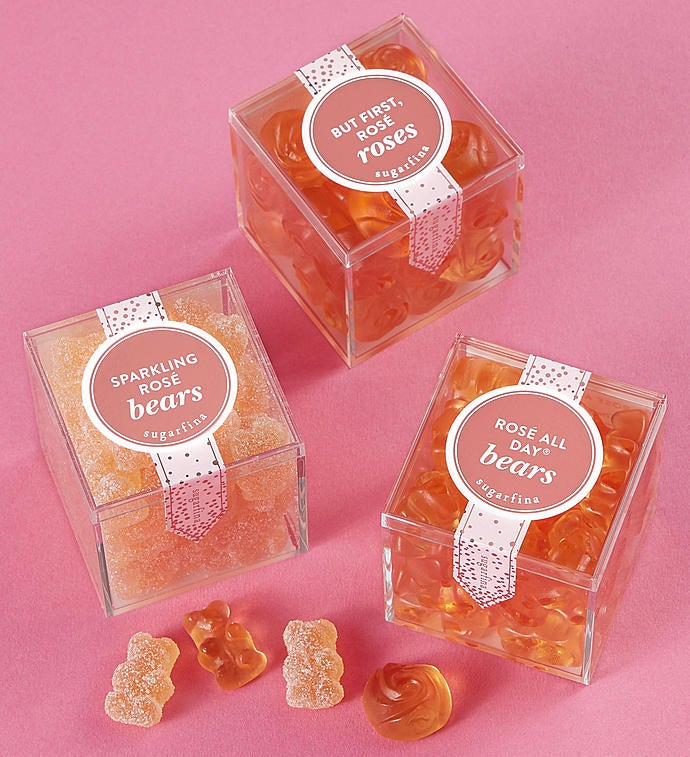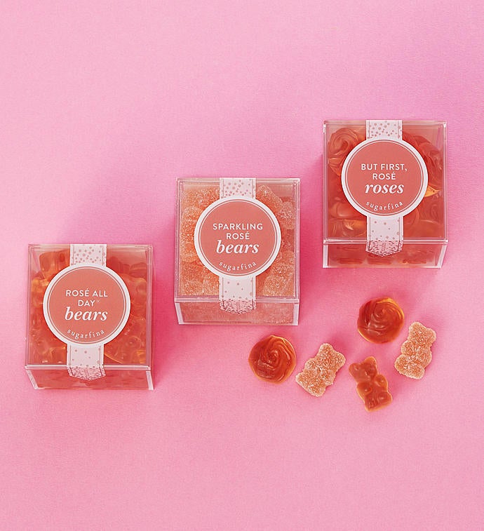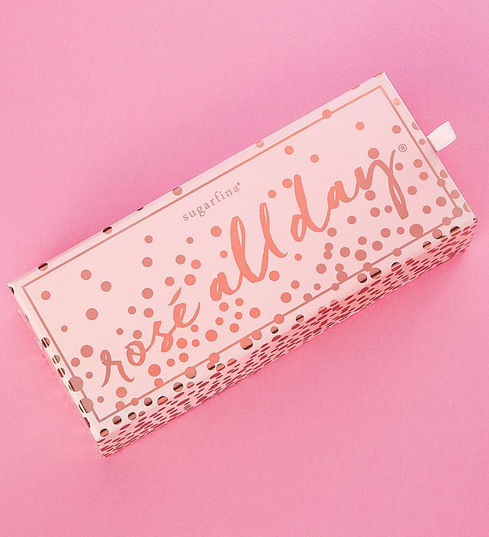 Get ready to Rosé All Day! Sugarfina will have you saying yes way to rosé with this 3pc Rosé All Day Bento Box. You can stop and smell the rosé with these amazing rosé-infused candies beautifully presented in a unique artisanal, high quality gift box. Sugarfina, founded by a couple who love candy and each other, was named one of the world's 50 most innovative companies in 2018 by Fast Company. Candies includes are But First, Rosé Roses, Rosé All Day rosé-infused gummy bears, and Sparkling Rosé Bears dusted in tart sugar crystals.