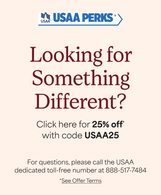 Save 25% off* sitewide when you use code USAA25 at checkout